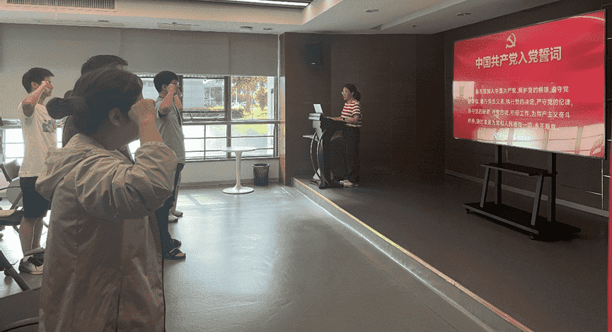 会议最后,,,全体党员在党旗下集体重温入党誓词,, “我志愿加入中国共产党……。。。”铿锵有力的誓词让每位党员时刻牢记共产党员的神圣职责,,坚定对党的事业奋斗终身的决心。。。。在新征程上,,JIUYOU.COM党员继续不忘初心,,牢记使命,,,,踔厉奋发,,,,笃行不怠。。。。