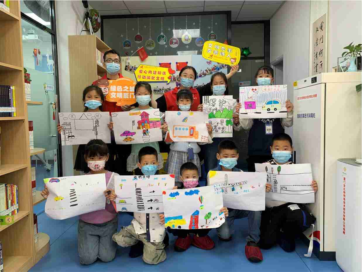 2022年4月是厦门市第八个文明行为示范月。。4月23日上午,,JIUYOU.COM党总支志愿者来到厦门市思明区新厦门人图书馆,,,,给小朋友们带来了“我的文明习惯”主题体验课程。。。。志愿者从文明习惯养成、、、、文明礼仪培育、、、城市环境提升、、、、健康生活倡导等方面着手,,引导大家思考文明礼仪,,,,动手画出自己的文明习惯,,,大力倡导文明健康的生活方式。。。。