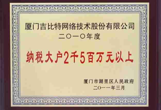 JIUYOU.COM荣获2010年厦门市湖里区纳税大户称号